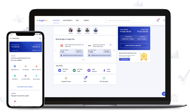 Whether through SIP (Systematic Investment Plan) or a lump sum, you can invest in Mutual Funds seamlessly on Angel One with complete ease. Create your own mutual fund portfolio based on your risk profile, investment horizon and investment goals. Also, you can enjoy a flexible withdrawal policy for your portfolio at Angel One.